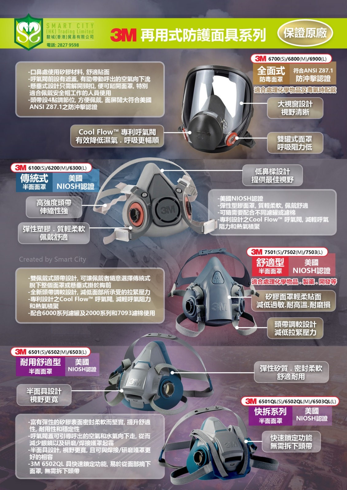 需搭配專用濾毒罐:3M 60013M 60023M 60033M 60043M 6006。