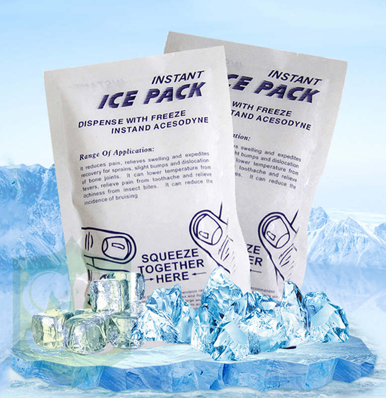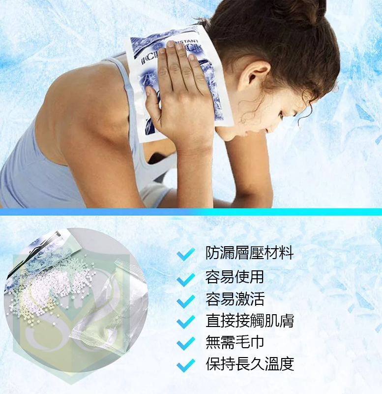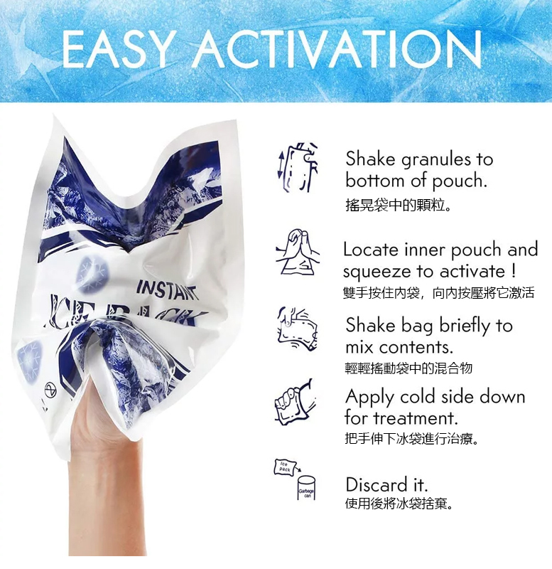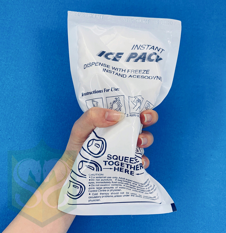 夾住冰袋內的小袋使其破裂,然後將其放在患處;