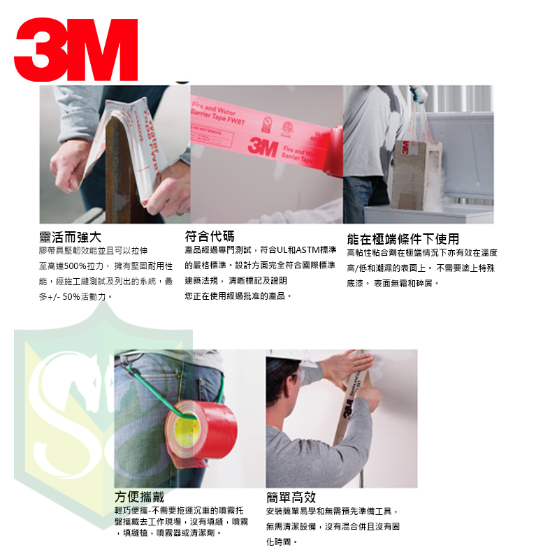 3M™防火防水膠帶是一種彈性防火,防水,防煙和隔音的膠帶。正確安裝後,它可以防止漏水和空氣中的聲音傳播,同時有助於控制火,熱和煙的傳播。