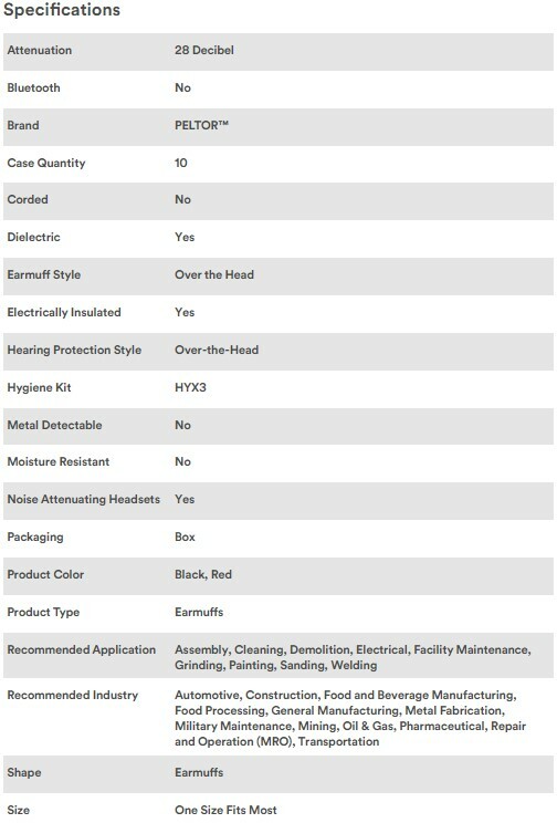 Over-the-head hearing protection with Noise Reduction Rating (NRR) of 28 dB for moderate to high noise exposure