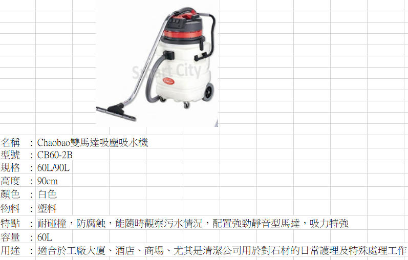 Performance characteristics: CB60-2B Super Bao brand 60-liter plastic bucket vacuum cleaner with translucent plastic body, collision-resistant, anti-corrosion, can observe the sewage situation at any time, equipped with a powerful silent motor, and strong suction. Random accessories are all available.