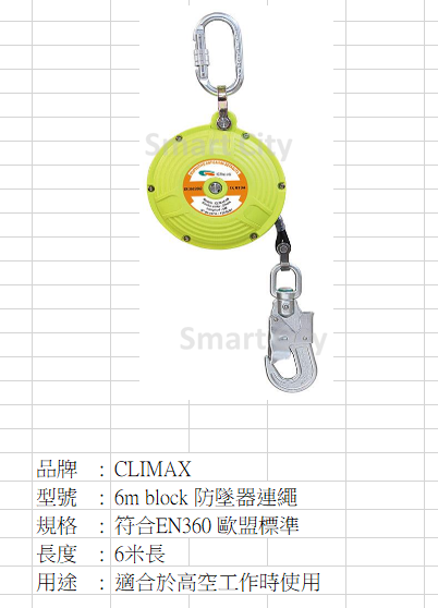 EN 360 CE 25毫米寬膠帶中的防墜落裝置。