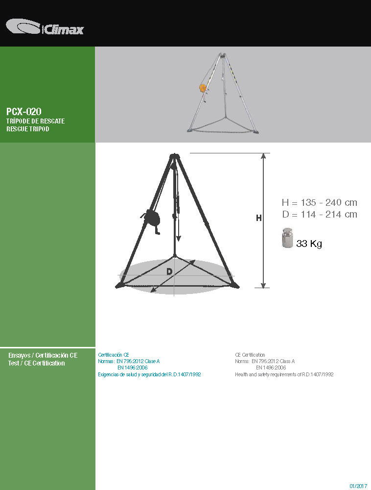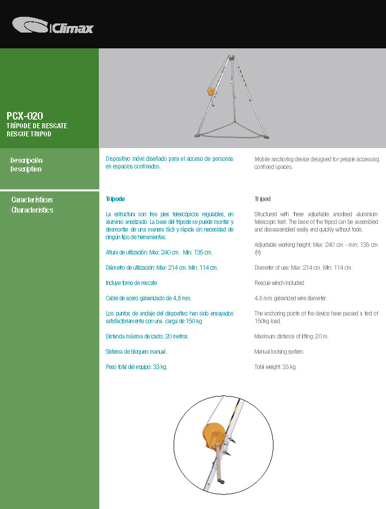 CLIMAX PCX-020 Rescue Tripod and fall arrestor