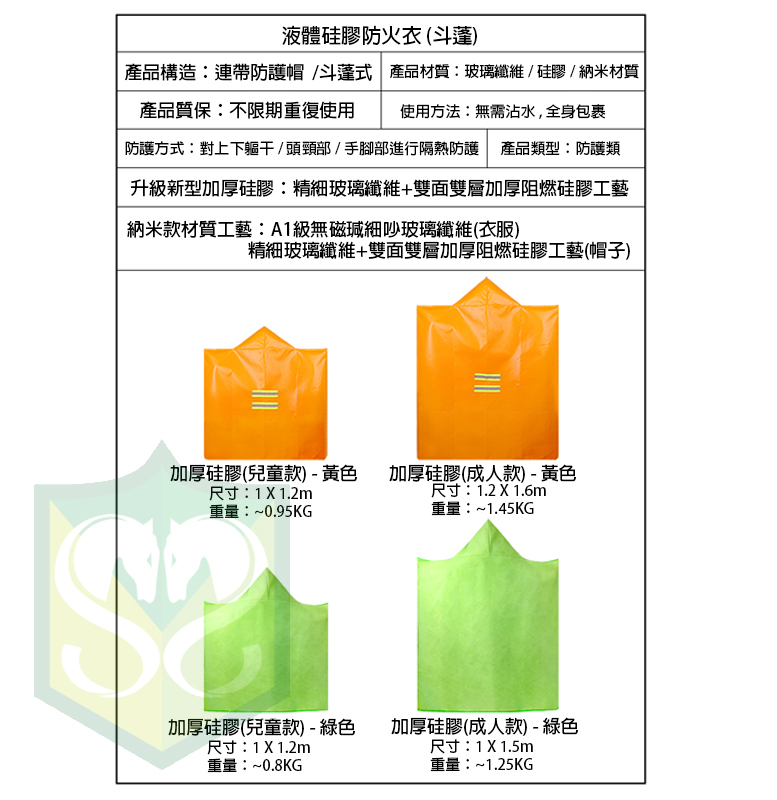 兒童款 (黃 ) :1M x 1.2M $300