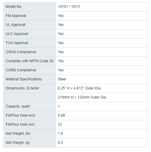 Type I safety tank; suitable for flammable liquids; 1 gallon; with stainless steel flame arrester; self-closing