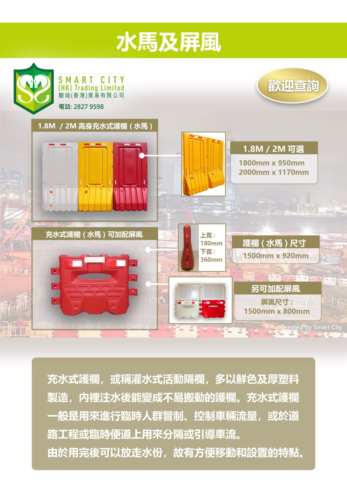 多以鮮色及厚塑料製造,內裡注水後能變成不易搬動的護欄。