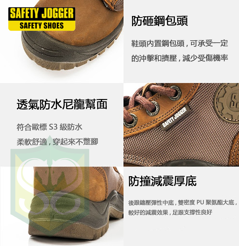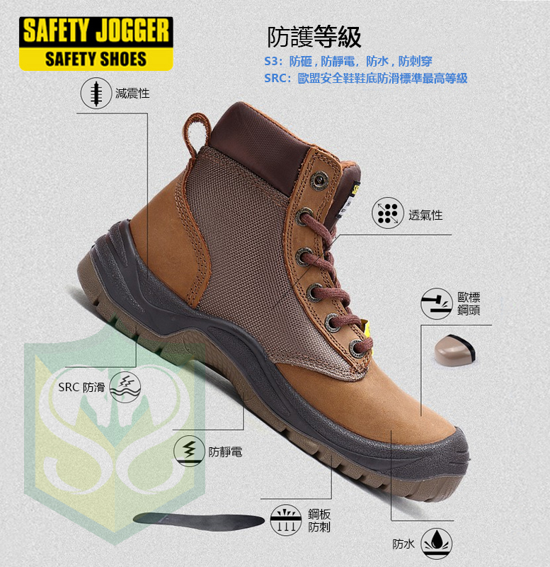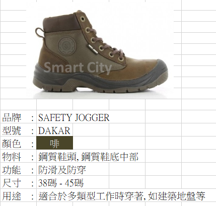 Model description:leather, with waterproof nylon, waterproof, brown, mesh nylon lining,antistatic, non-slip, anti-perforated steel sole, shock-resistant, S3, steelhead cover, PU / PU sole.