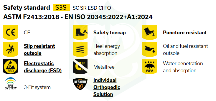 A modern shoe that not only looks good, but also delivers reliable protection. FLOW S3 has the same features as CADOR S3, but with the main difference that it is completely metal free. Therefore, it is the ideal choice for professionals in logistics and electronics who don't want to take off their shoes when entering the factory or going through security gates. FLOW S3 features a composite toe cap, an anti-puncture midsole, ESD requirements and an SR slip-resistant outsole to protect you from unexpected hazards. The removable foam footbed combined with our Airblaze technology will keep you feeling fit and fresh, all day, every day. Low-cut, water-resistant model that is suitable for both wet and dry environments.
