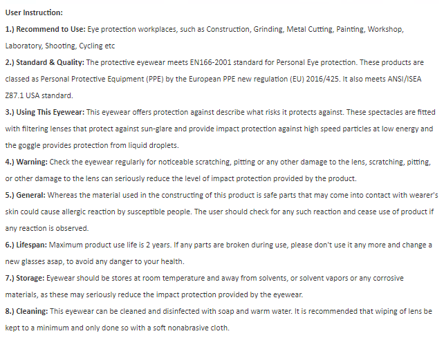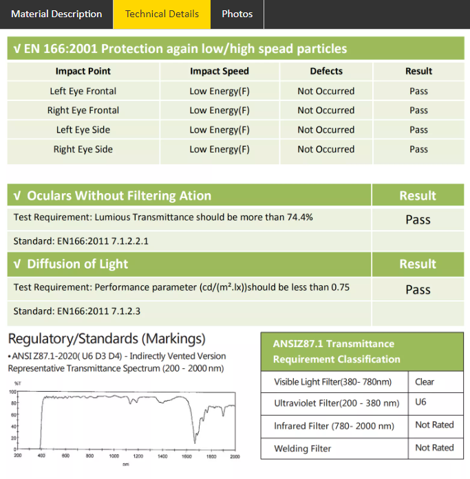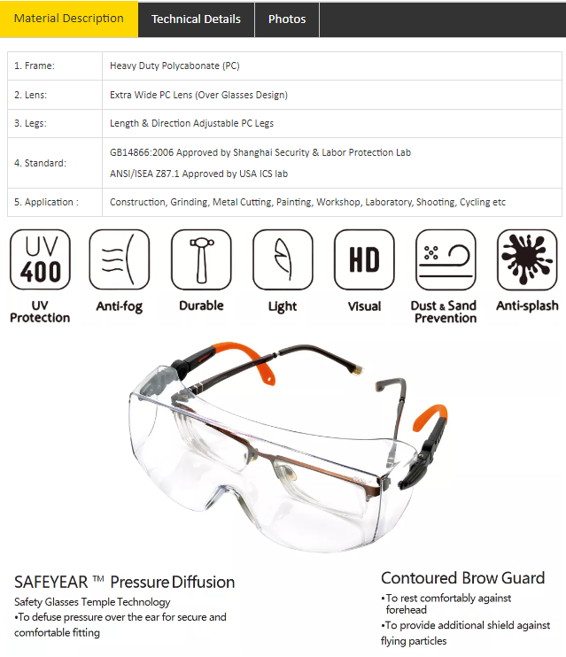 - 符合GB14866:2006及ANSI/ISEA Z87.1標準