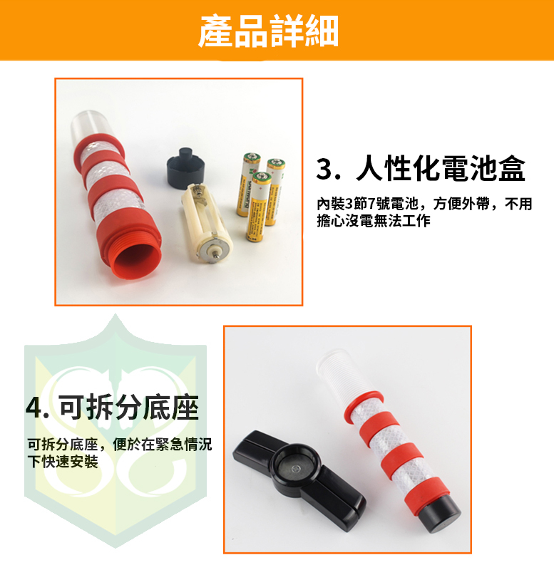 指揮棒有一個磁性底座,可以固定在車頂或汽車側面。使用方便,無需連接複雜的電線,只需使用 3 節 AAA 電池。