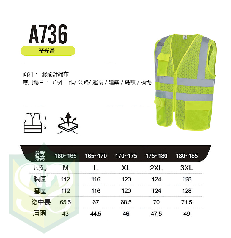 Fabric: Polyester knitted fabric, 3M Vision Li glass microbead reflective material