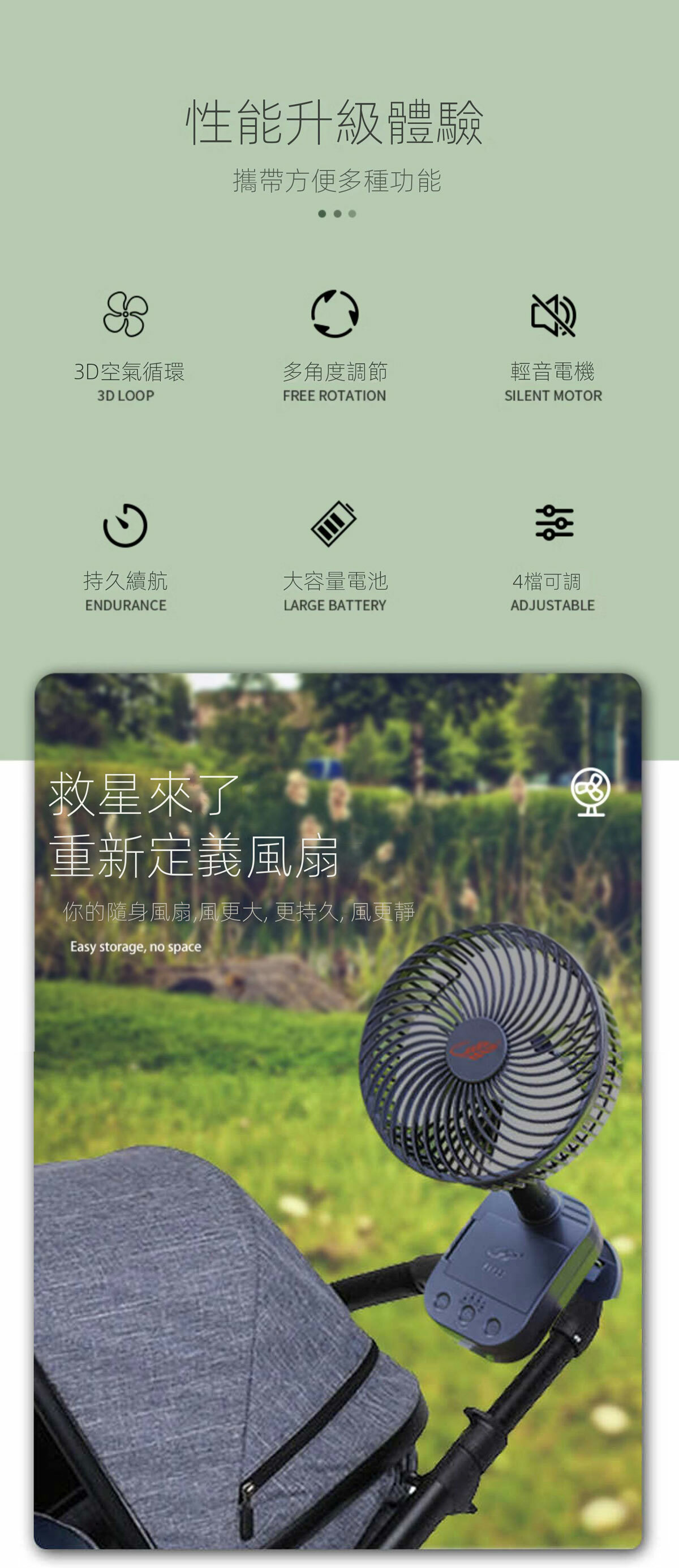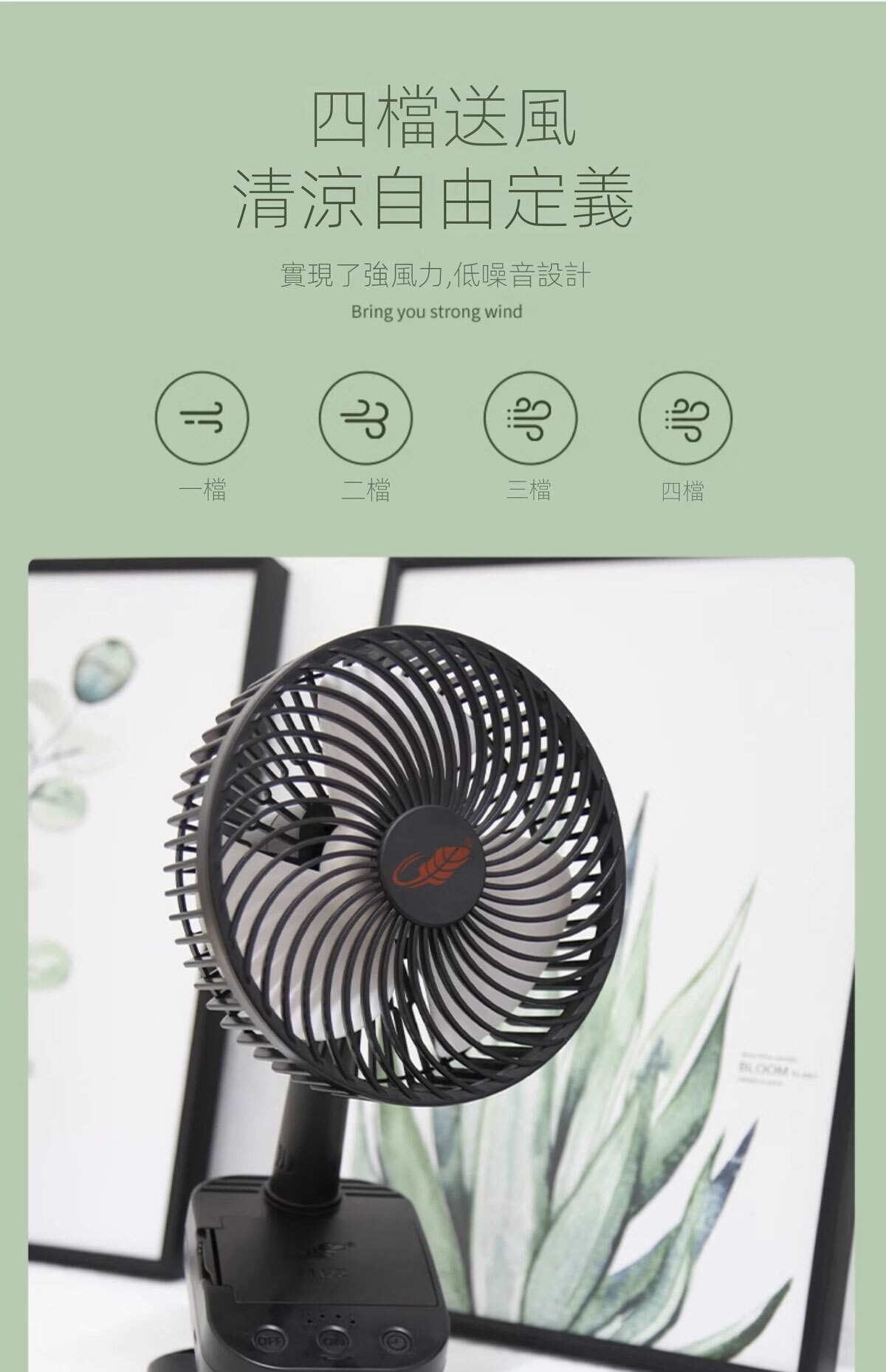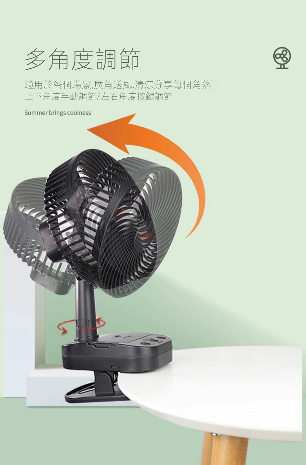 共田 F1122 夾台自動搖頭風扇具備6吋扇葉,可以長按開關制控制旋轉,風扇設有4個風力檔次座檯,夾檯,掛牆亦非常合適