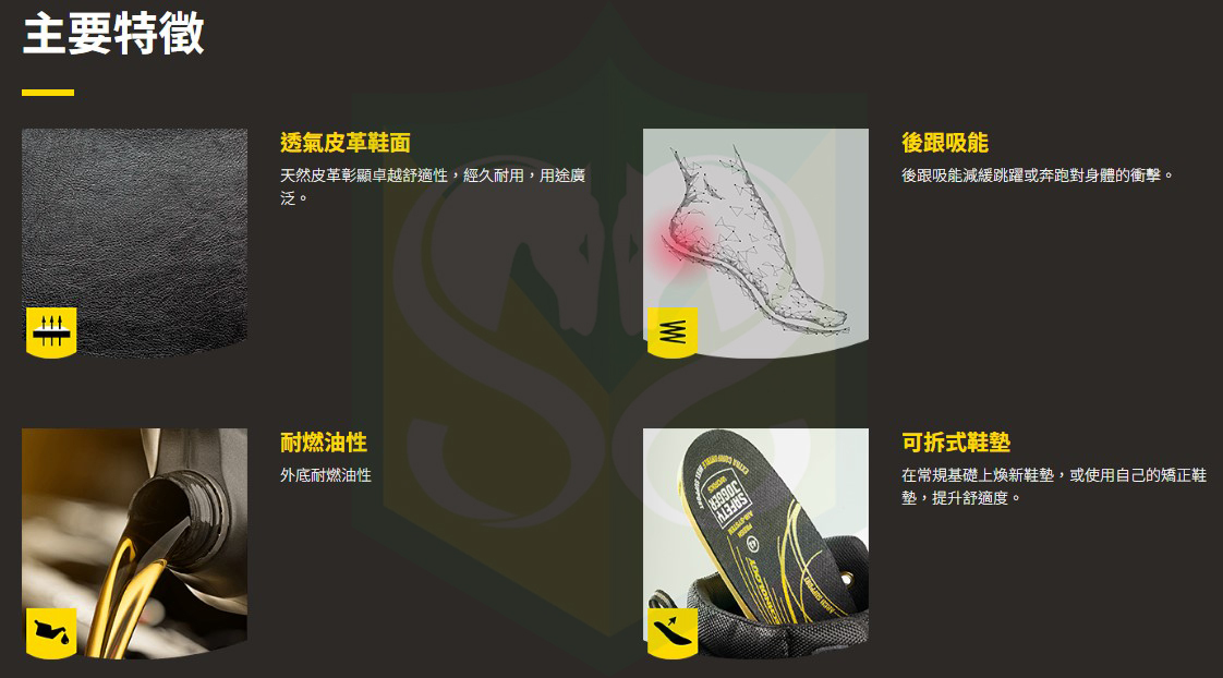 JACKMAN 靴子讓您在任何工作場所都能保持舒適、安全和時尚。這款切爾西靴採用SR 防滑鞋底和防水鞋面,可應付高濕度和高油污環境。 JACKMAN 的可拆式鞋墊可讓您客製化舒適度,而耐油耐燃料外底、吸能鞋跟和透氣皮革鞋面則確保了持久耐用性。不僅如此,這款鞋還能緩解身體姿勢造成的疼痛,並能防止高空墜物、高溫表面和靜電積聚。