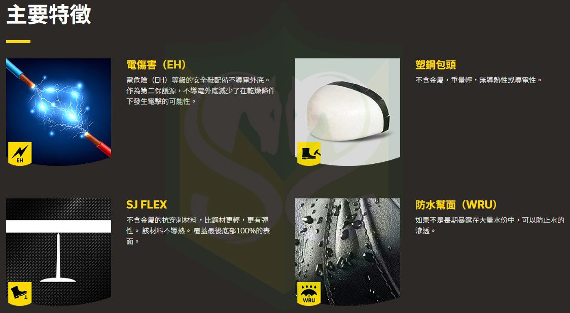 MARS-EH 中筒鞋是專業人士的一大突破。它採用無金屬設計和複合材料鞋頭,重量輕,可減輕姿勢疼痛,並提供出色的保護,防止高空墜物。它採用防水設計,無論在潮濕或乾燥的環境中,都能保持雙腳乾爽舒適。電氣危險等級和SJ Flex 技術可提供防觸電和尖銳物體的保護。獨特的抓地力可確保在凹凸不平的地面上也能完美抓地,是一款全能型產品。此外,它還能保持腳部涼爽,阻止靜電火花或電荷,為您的安全做出貢獻。