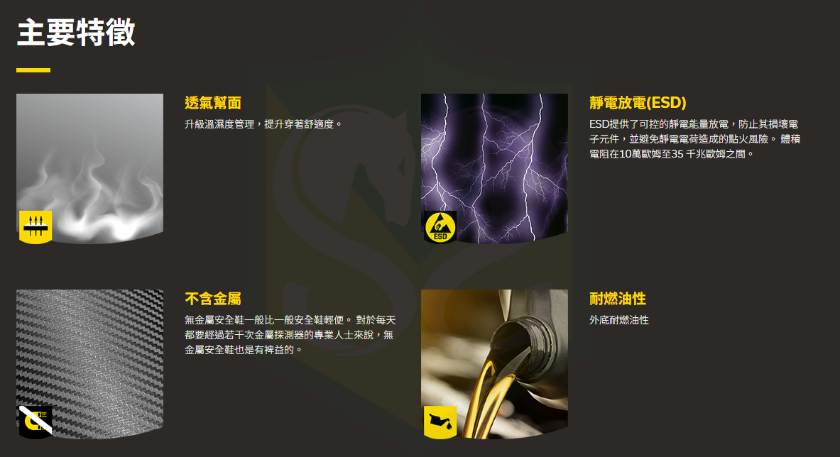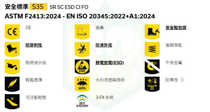 MODULO ARMOR S3S 安全靴讓您體驗無極限的舒適。這款鞋採用透氣的MAX TEK 裝甲鞋面設計,具有出色的溫度和濕度調節功能,即使在最惡劣的條件下也能讓您舒適地工作。靜電放電(ESD)保護功能可降低點火和損壞電子元件的風險。由於採用了過鼻設計,這款靴子不僅輕盈耐用,而且經久耐用。 MODULO ARMOR S3S 不含金屬,專業人員可輕鬆通過金屬探測器。耐油和耐燃料的外底具有出色的防滑性能,而可拆卸的腳墊則增加了額外的舒適度。