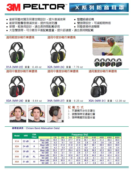 噪音衰減系數:NRR值 22dB