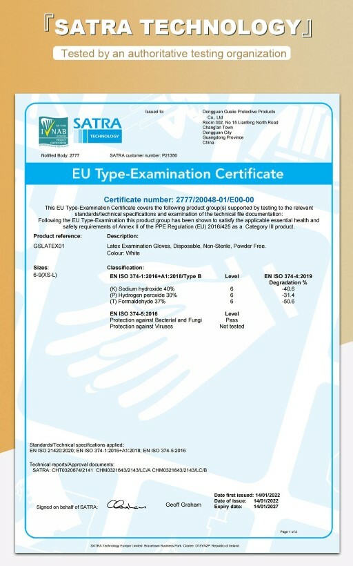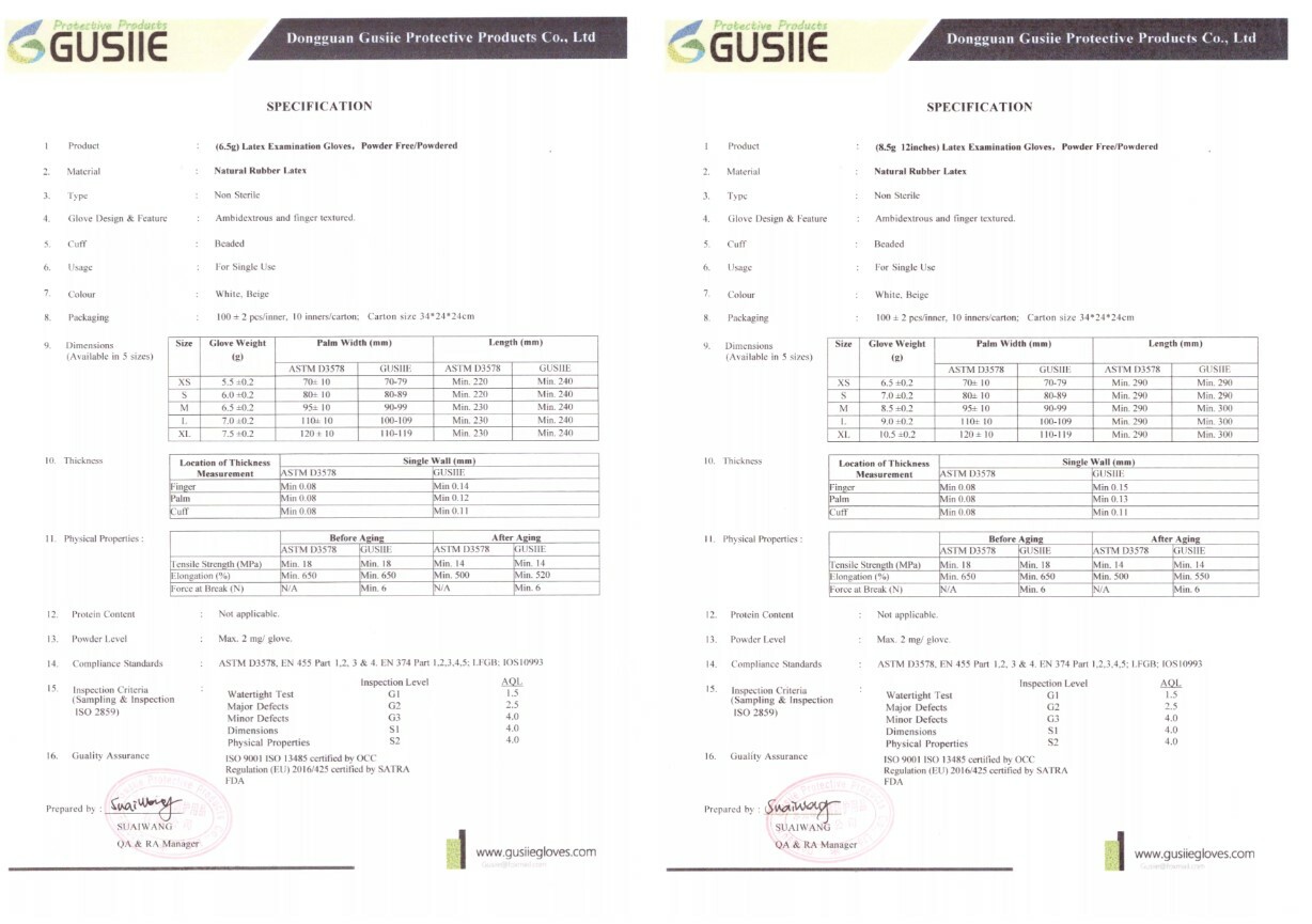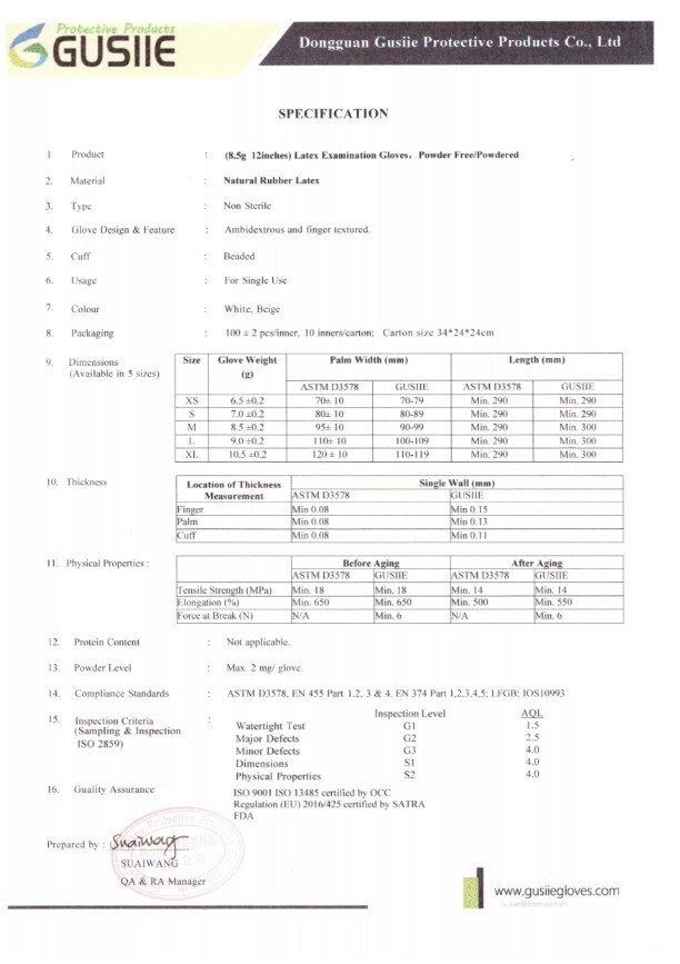 附有Test Report (GB 10213),ASTM D3578,EN455-1,EN455-2,EN455-3檢測。