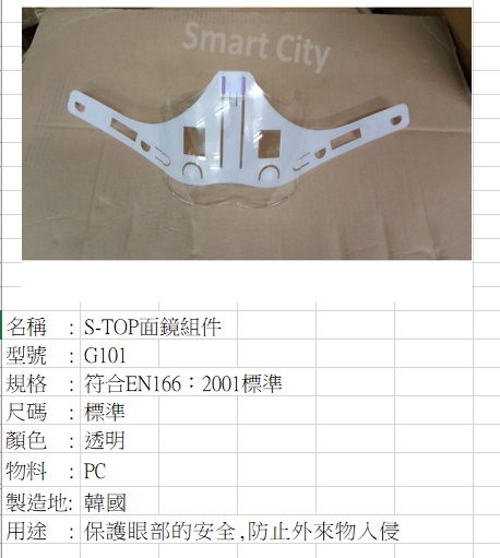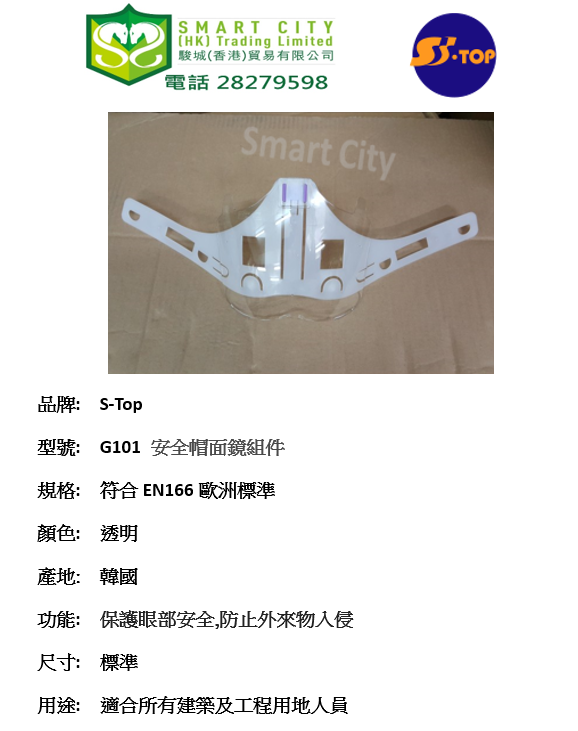 韓國 S-TOP G101 安全帽面鏡組件