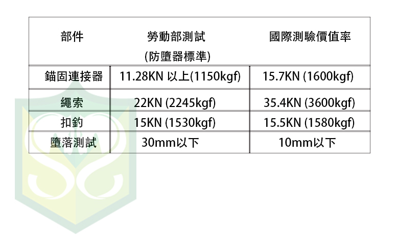 • 採用集成繩索,在跌落時對人體的衝擊最小
