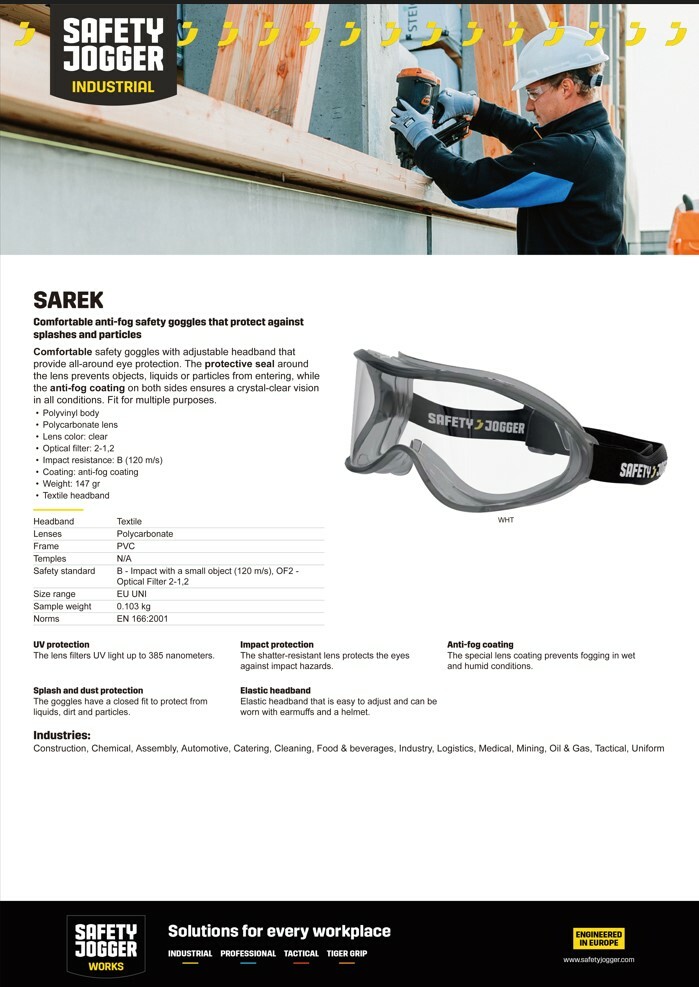 可調節的頭帶提供了安全和舒適的佩戴,並可與其他防護設備,如頭盔和耳罩一起佩戴.適合多種用途。