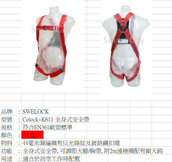 SWELOCK COLOCK+K619 - 全身式安全帶